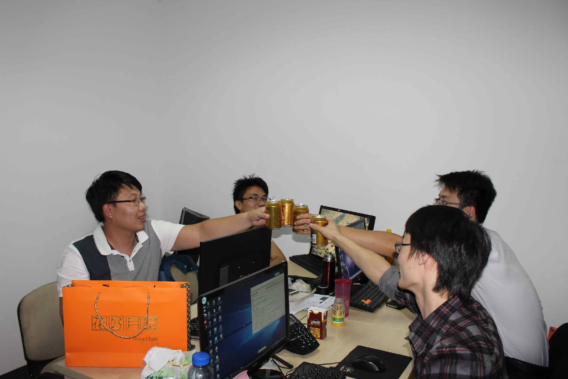 網(wǎng)絡(luò)運(yùn)營(yíng)組的漢子們都已經(jīng)打開加多寶開始暢飲了!
