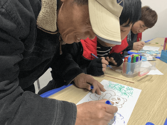 還學(xué)習(xí)了簡單的手語,與他們一起畫畫