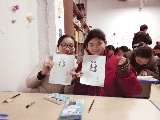 在學(xué)校熊老師指導(dǎo)下,慰問團(tuán)和孩子們一起上了一堂“繪畫課”。