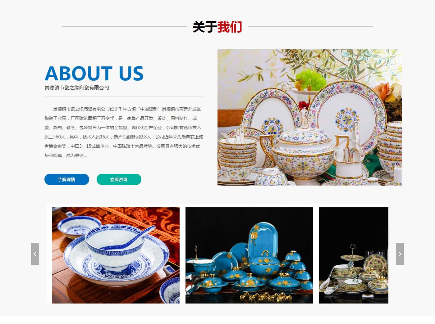 景德鎮(zhèn)市瓷之緣陶瓷有限公司位于千年古鎮(zhèn)“中國瓷都”景德鎮(zhèn)市高新開發(fā)區(qū)陶瓷工業(yè)園,廠區(qū)建筑面積三萬多㎡,是一家集產(chǎn)品開發(fā)、設(shè)計、原料制作、成型、燒制、彩繪、包裝銷售為一體的全能型、現(xiàn)代化生產(chǎn)企業(yè),公司擁有熟練技術(shù)員工360人,其中,技術(shù)人員16人,新產(chǎn)品創(chuàng)新團隊8人,公司近年來先后榮獲上海世博會金獎,中國3,15誠信企業(yè),中國琺瑯十大品牌等。公司具有強大的技術(shù)優(yōu)勢和規(guī)模,成為景德鎮(zhèn)突出日用陶瓷生產(chǎn)企業(yè)。公司秉承“質(zhì)量至上,誠信為本”的經(jīng)營理念,以使用價值與景德鎮(zhèn)獨特的陶瓷藝術(shù)結(jié)合,生產(chǎn)出高質(zhì)量、高品位的具有新時代氣息的產(chǎn)品。
